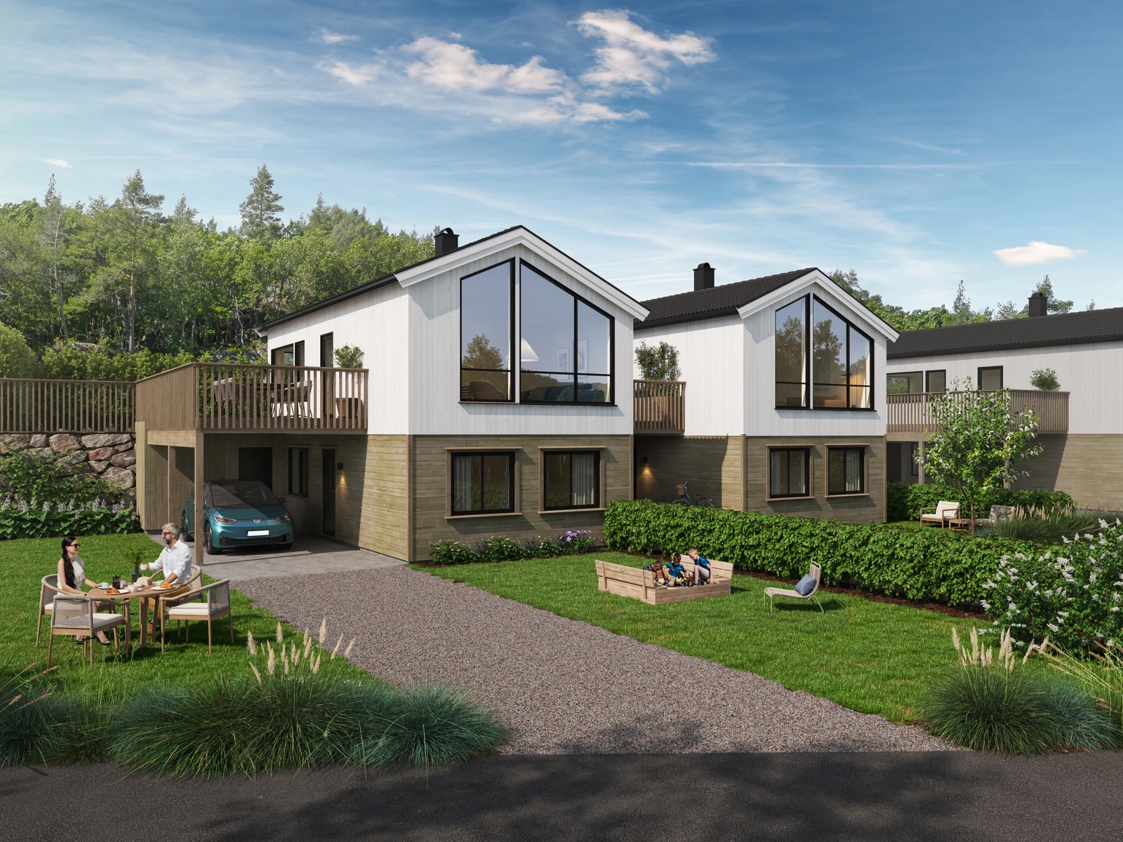 Meld din interesse! 6 nøkkelferdig eneboliger i rekke med effektiv planløsning og vestvendt uteplass.