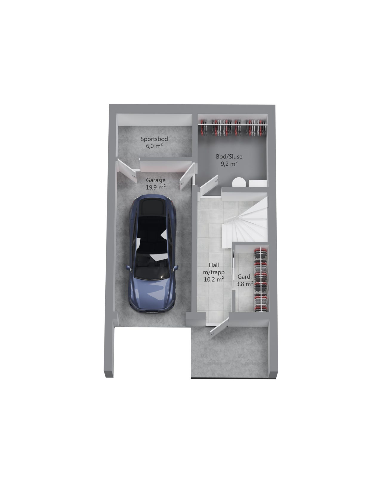 • Integrert garasje med romslig bod i bakkant.