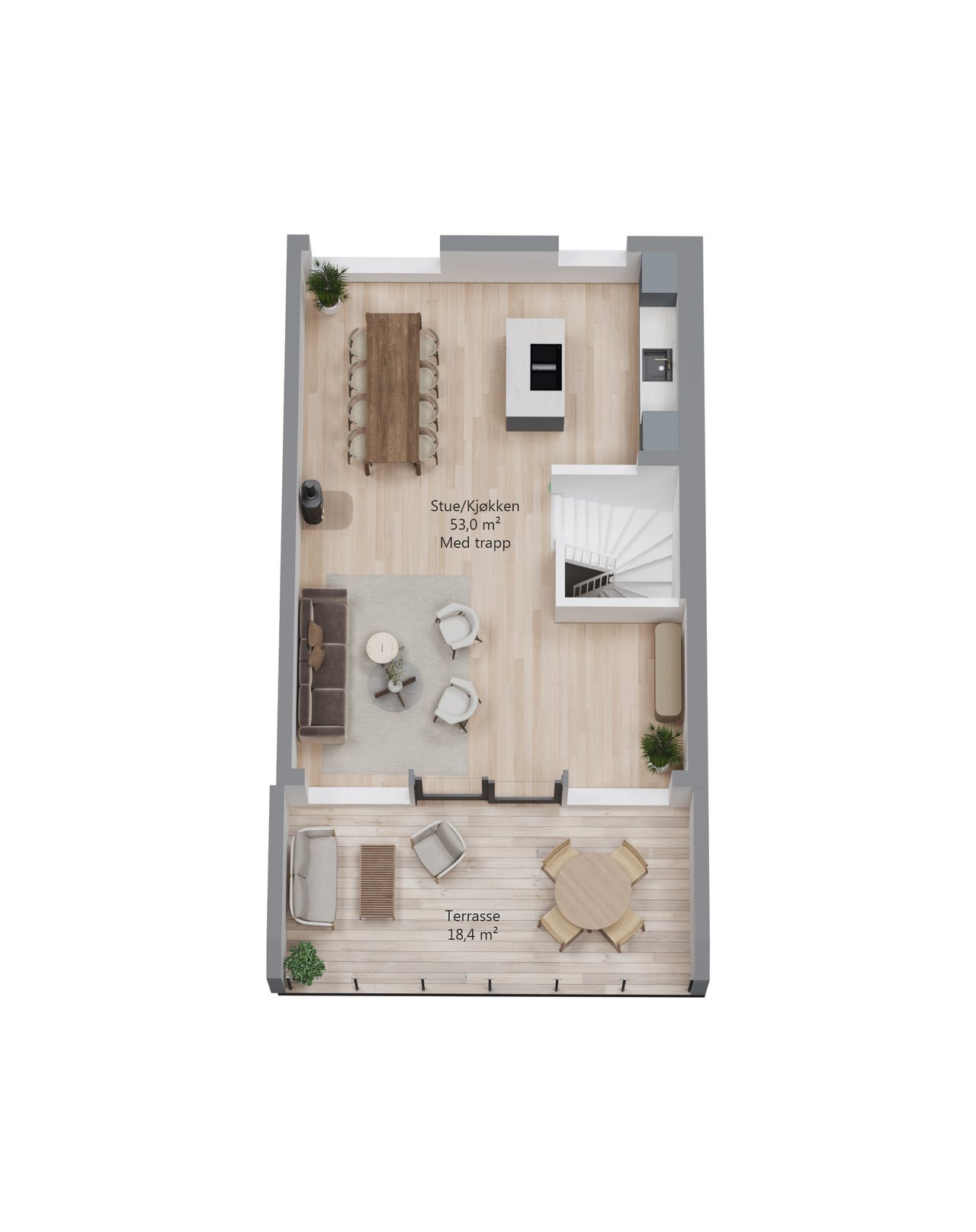 • Solrike terrasser (13 m² + 18 m²).